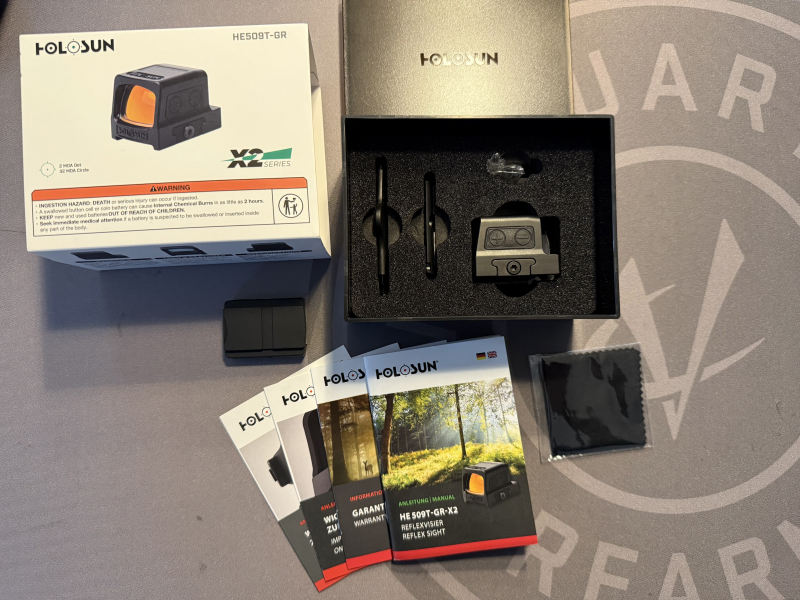 Verkaufe hier ein Holosun HE509T-GR-X2 geschlossenes Reflexvisier Grünpunkt Visier + wechselbarem 2MOA Punkt, 32MOA Kreis Absehen, Titan, schwarz mit Rechnung aus 07/2025.
