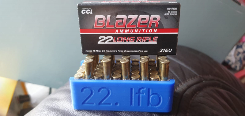 Geeignet für .22 lfB / .22 lr Munition der Hersteller Blazer und CCI, Die diese Kunstoffplatte haben, wie auf dem Foto.