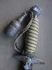 Luftwaffendolch in gutem Zustand mit Alters- und Tragespuren. Originale Griffwicklung. Parierstange und Knauf aus Aluminium. Auch das Portopee ist ein getragenes Teil, was man an der abgeflachten Oberfläche der Kordeln erkennen kann. In einer weiteren Auktion ist das Tragegehänge angeboten. Alle Beschläge des Gehänges sind aus Aluminium. Weil es Sammler giebt, die nur die Dolche suchen und andere nur Gehänge sammeln, habe ich diese Teile in getrennten Auktionen. Die Scheide ist natürlich magnetisch.