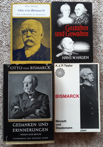 siehe Bild, verkaufe 4 Bücher im Zusammenhang mit Otto von Bismarck, verkaufe NUR alle komplett!...für weitere Infos bitte im Netz schauen, von der Thematik habe ich keine Ahnung. Gebrauchsspuren können vereinzelt vorhanden sein, manch Umschlag hat Risse - also nicht NEU...