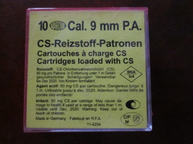 Wadie - CS Reizgas - Cal. 9 mm - Gelb - Ablauf Dezember 2020 - 8 Stück in einer Originalen 10 er Packung -