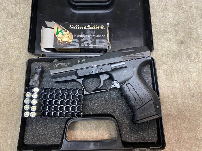 Zum Verkauf kommt hier eine gebrauchte Walther P99 mit der beliebten 762 Ptb. Sie hat den breiten Auszieher der etwas raussteht. Sie hat Gebrauchsspuren rundherum und die Kimme fehlt. Die Funktion ist trocken einwandfrei, also laden, abschlagen und das durchrepetieren mit Hülsenauswurf und Schlittenfang funktioniert einwandfrei. Mit passenden Abschussbecher, Magazin und Koffer. Und 9 Schuss Titan in S&B Packung. Empfehlen würde ich aber Geco Munition. Sonst wie auf den Bildern zu sehen. Versand versichert. Bei Fragen gerne fragen.
