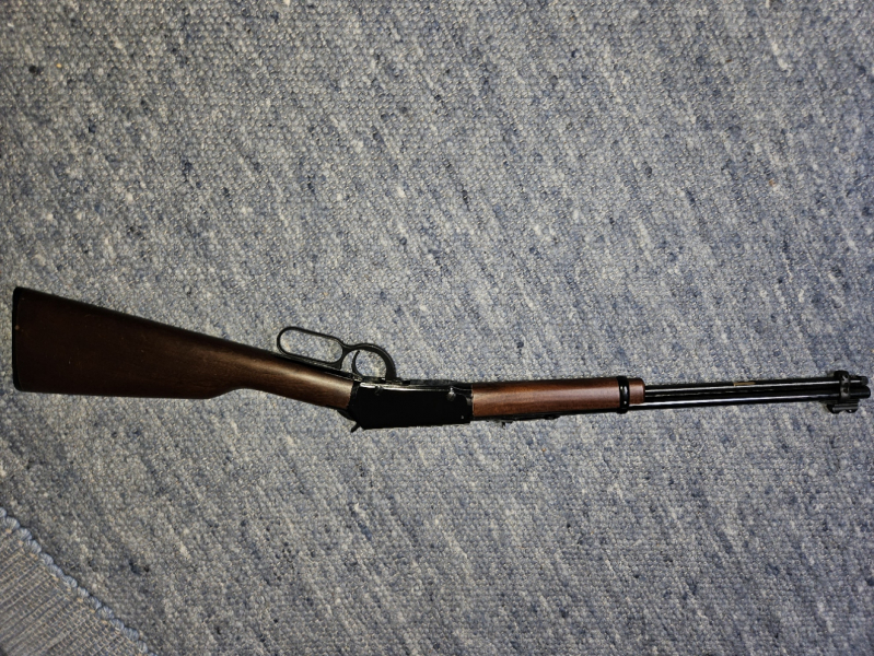 Schöner Unterhebel-Repetierer von Henry, Kaliber .22 lfB. Sehr schöner, geschmeidiger Repetiervorgang, sehr zuverlässig. Semi-Buckhorn-Kimme und Korn mit Korntunnel. Mit 11 mm Prismen-Schiene für Optik-Montage. Schafft aus sehr schönem, dunklen Holz. Der Vorbesitzer hatte ein Zielfernrohr montiert, dadurch sind oberflächliche Kratzer auf dem Systemkasten vorhanden.