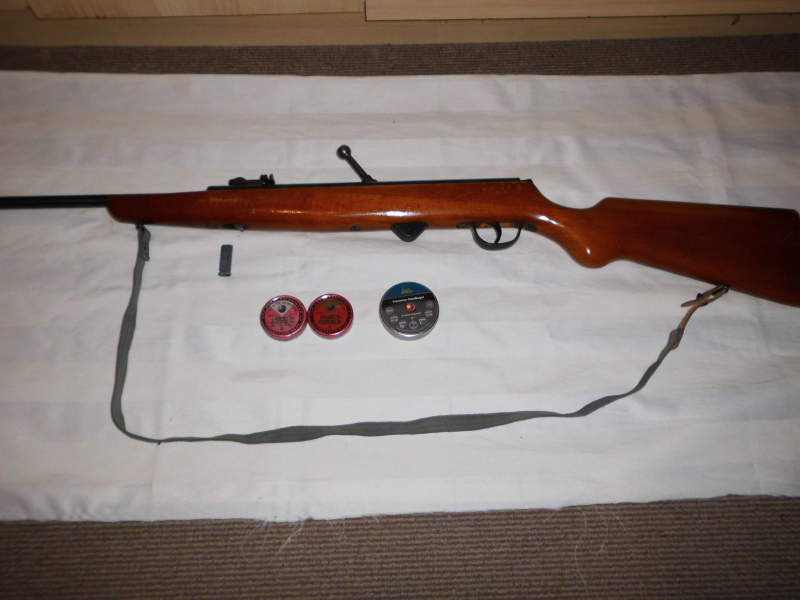 Ein Haenel 310 im gutem Zustand.. Unverbaut steht seid 40 Jahren bei mir im Schrank.. 1 x im Jahr getestet.. Hat guten Druck.. Für die Feineinstellung lässt sich das Korn trimmen.. Es gibt 2-3 Lagerspuren.. Aber nur im Lack.. Die Tasche müsste mal in die Waschmaschine.. Das Leder löst sich auf..