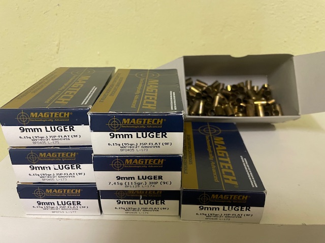 Verkaufe hier 490 Stk. Hülsen von Magtech 9 mm. Einmal geschossen,nicht wiedergeladen. In Verpackung. Keine Garantie,keine Rücknahme und kein Umtausch.