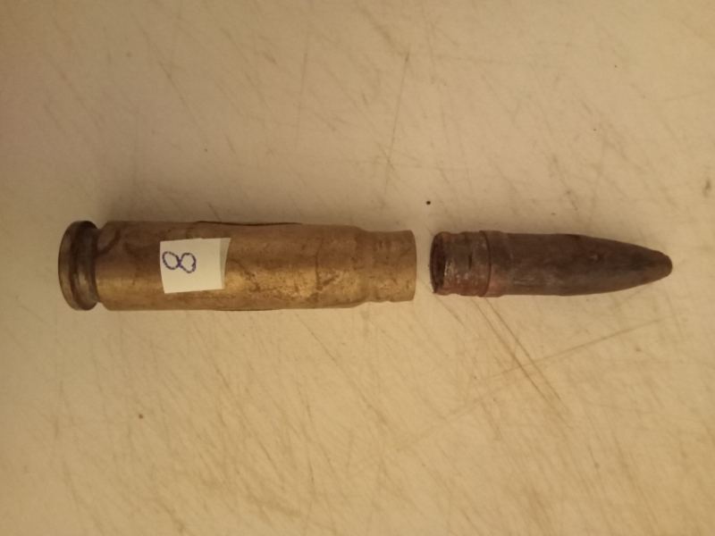 Patrone 131/13 ohne Bund. Hüle aus Messing Bodenstempel P-131-38-MG mit E-Zündhütchen und Ü-Geschoss. Sie bieten genau auf diese Patrone. Frei von allen verbotenen Stoffen, keine Rücknahme oder Garantie, da Privatverkauf.
