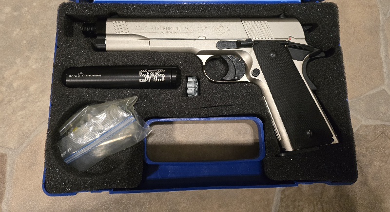 Hallo zusammen, hier habt Ihr die Möglichkeit einen schönen vernickelten Colt Government 1911A1 von Umarex zu ersteigern in Neuwertigem Zustand inkl SWS Schalldämpfer. Denke die Bilder sagen genug aus. Sollten noch Fragen sein gerne Anschreiben.