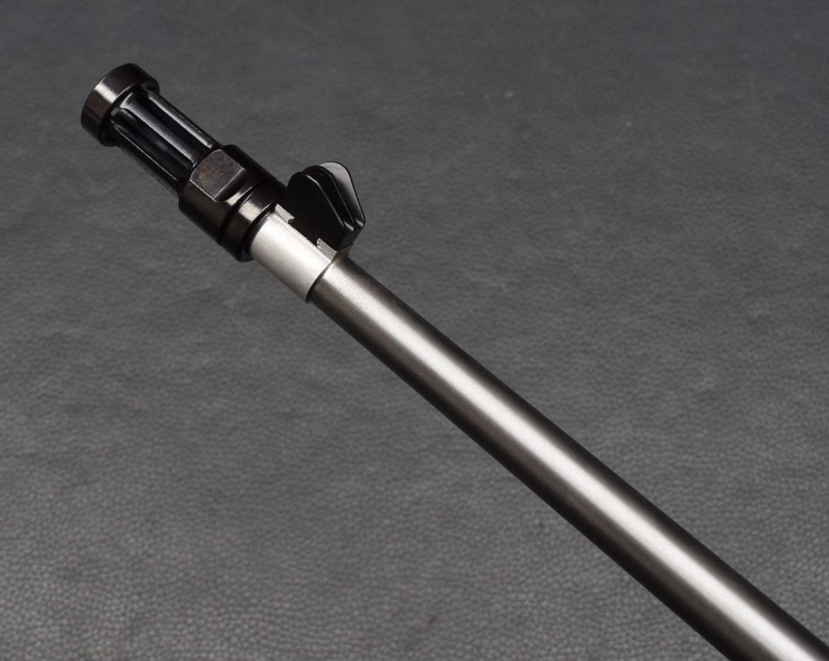 Es verfügt wie damals über einen Mündungsfeuerdämpfer (1/2"-28 Gewinde) und integrierte Picatinny-Schiene.
