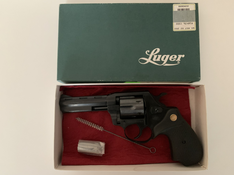 Biete einen Revolver von Eduard Kettner, Typ LUGER R 94, 4 Zoll, Kaliber 9 mm Knall, zur Versteigerung an.