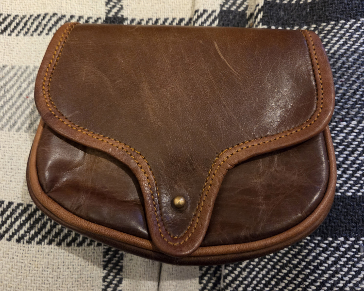 Biete hier eine kleine Pulvertasche aus echtem Leder an, diese kann am Gürtel befestigt werden. Die Tasche hat zwei Fächer innen. Die Tasche ist kaum gebraucht und weist keine großen Gebrauchsspuren auf.