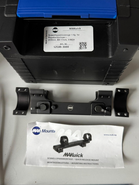 MAKuick Schnellspannmontage 1-tlg. für Repertierbüchse in sehr gutem Zustand. Lediglich Gebrauchsspuren vom Verkleben der Optik (siehe Foto).