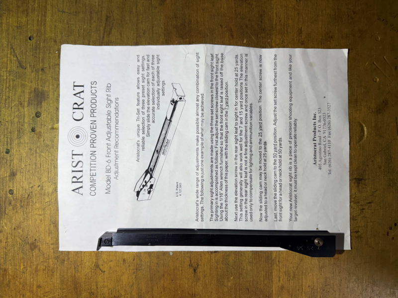 Visier-Schiene, Revolver, "Aristocrat", Model BD-6, 3-Stellungen
