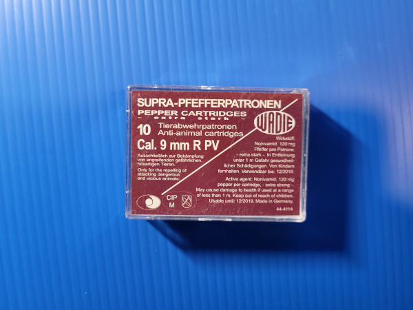 Sie kaufen eine Packung 10 Stück Wadie SUPRA Pfefferpatronen im Cal. 9mm Revolver
