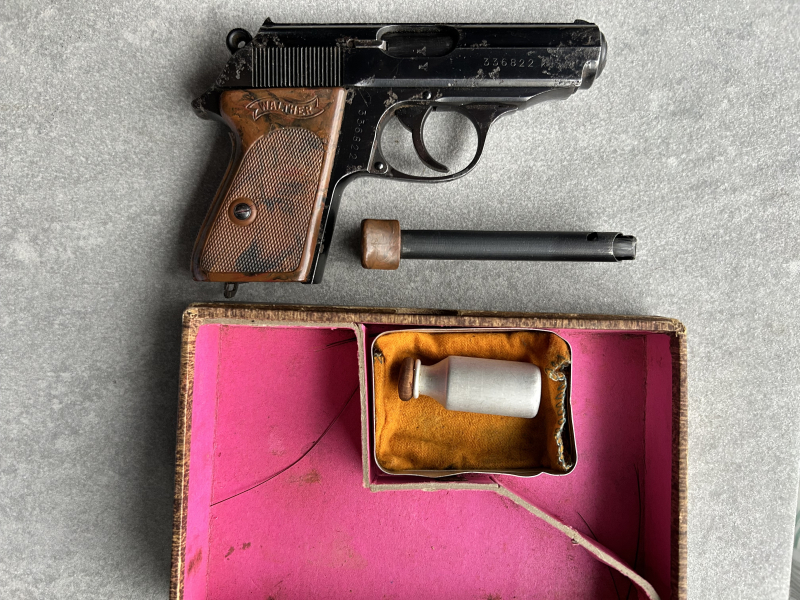 Pistole Walther PPK aus Zella Melhlis im Kaliber 7,65 Browning im Fundzustand.Oberfläche mit Narben. Lauf blank. Original Magazin,Original Walther Karton mit Zubehör. Die Waffe stammt aus einer Sammlung und wird im Kundenauftrag verkauft. Differenzbesteuerung. Alle Angaben nach bestem Wissen und Gewissen. "Beantworte keine E-Mails". Den beschriebenen Zustand entnehmen Sie bitte aus den Bildern. Internationaler Versand ist nur möglich, wenn Sie mir Ihren deutschen Waffenhändler nennen, der den Waffenexport für Sie übernimmt.