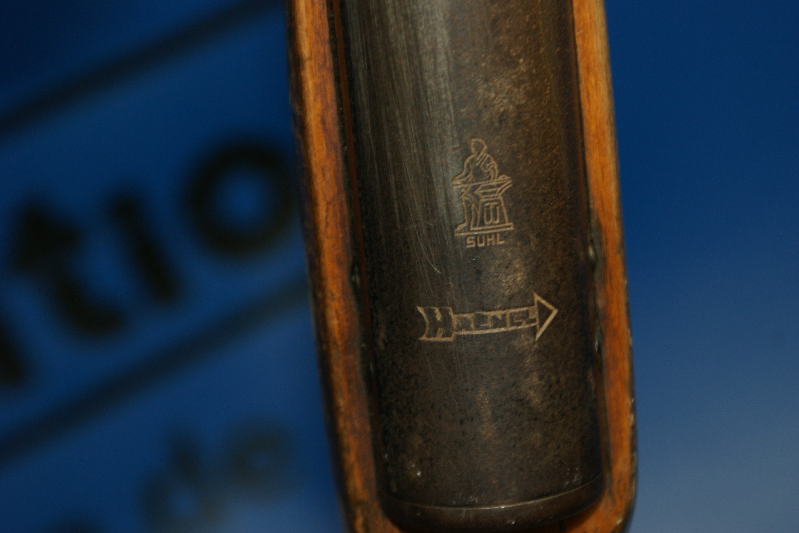 Reperatur am Schaft wie auf den Bildern zu sehen ist. Lager- und Gebrauchsspuren.