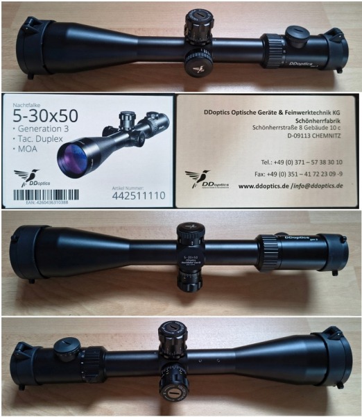 Sie bieten hier auf ein gebrauchtes, gut erhaltenes Zielfernrohr Nachtfalke V6 5-30x50 Gen3 von DDoptics.