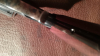 Geliefert wird die Waffe mit Originalkarton, Anschußscheibe, Rechnung von 2015, dazu schmalere Griffschalen der Fa. River Junction und der Anleitung. Die Waffe hat neben den üblichen Gebrauchsspuren eine kleine Fehlstelle an der Brünierung der inneren Griffspange (siehe Bild, wurde schon so ausgeliefert). Schußbelastung ca. 2000 Schuß.