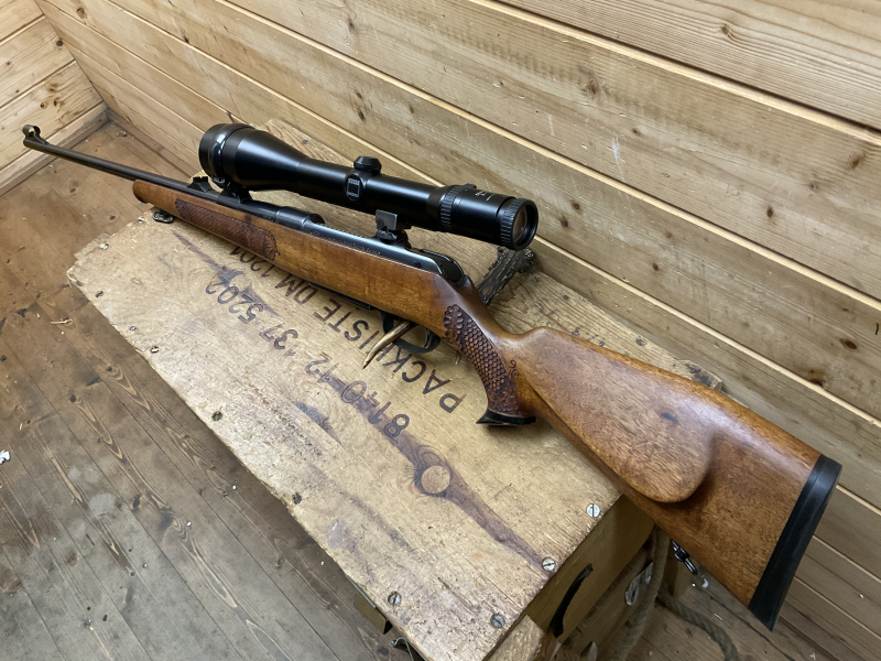 Sonstiges: mit Metalleinsteckmagazin, super Qualität, Schlossgang super, Gummischaftkappe, super Schaftholz verschnitten, Kaisergriff aus Büffelhorn, sehr gute Schussleistung! Schrankwaffe!