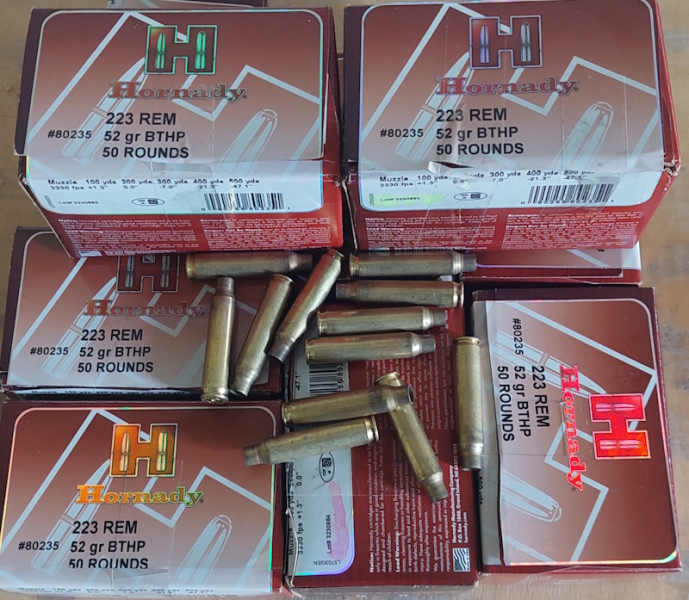 Hülsen .223 Remington Hornady für Wiederlader. 500 Stück-einmal abgefeuert aus der gleichen Waffe. Gewicht ca.3,7KG Die Hülsen sind nicht gereinigt PRIVATVERKAUF ! keine Garantie - keine Gewährleistung - keine Rücknahme !