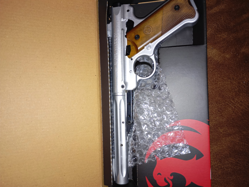 Verkaufe Knicklaufpistole Typ Ruger ,Mark IV, in silber,cal.4,5 mm Diabolo.Ähnelt der bekannten KK-Version mit verstellbarer Visierung.