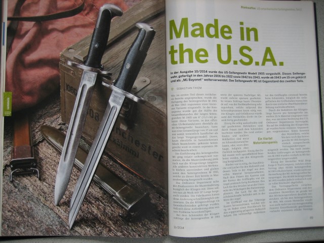 Für Historiker, Waffenfreunde, Wiederlader und -BlankwaffenSammler +++ angeboten wird ein DWJ-Heft mit einem interessanten Beitrag für Blankwaffensammler -- ** US amerikanische Seitengewehre M 1 ** ++ Ab 1943 wurde das Bajonett M 1 verwendet. Ein Beitrag über Einzelheiten zum "M 1 Bayonett" können Sie in dem Bericht (8 Seiten) nachlesen; ein Bericht, der sicher nicht nur für Sammler von Interesse ist. +++ und es gibt noch weitere interessante Berichte z.B. für Sammler/Schützen (4 Seiten)- ** PPK Nachbauten von Erma - Die 1980er ** oder für Wiederlade - ** Die Patrone 9,3 x 57 ** - mit Ladedaten +++ Das Heft ist gebraucht, befindet sich aber in einem sehr guten Zustand +++ Der Versand erfolgt als Großbrief mit DHL (unversichert) ; die Versandkosten gelten nur für Deutschland.+++ Bieter aus dem Ausland bitte Versandkosten vor Gebot erfragen.+++ Versandrabatt möglich, sehen Sie auch meine anderen Angebote.+++ Privatverkauf, daher keine Gewährleistung, Garantie oder Rücknahme.11-14 +++ Fragen bitte mailen.