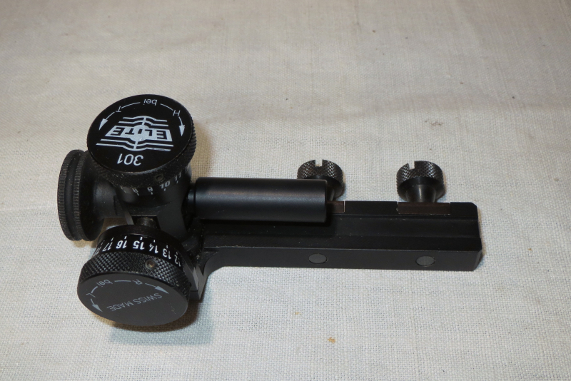 Elite Spezialdiopter mit Gegelichtblende - wenig gebraucht. 20er Klick. Verstellung ist leichtgängig. Es handelt sich um ein Schweizer Präzisionsdiopter.