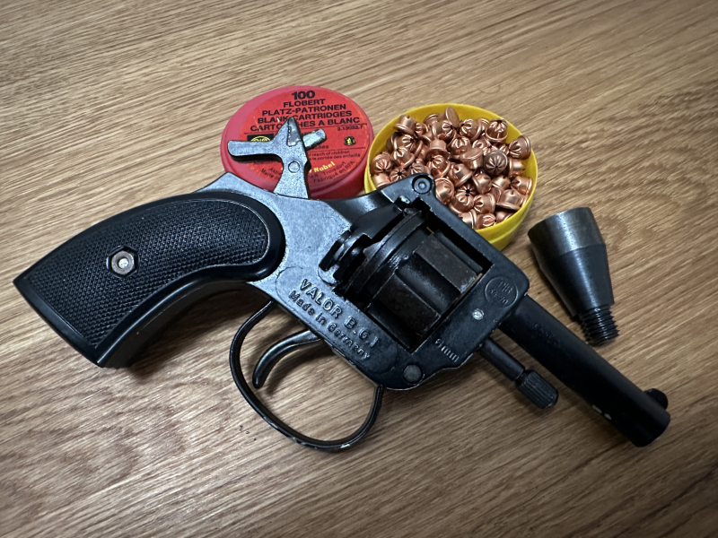 Aus großer Sammlung ,viel schönes,seltenes aus den guten,alten Zeiten!Bei Interesse einfach melden ...hier ein ganz seltener,kleiner Valor-Revolver im Cal.6mm Knall&Gas,einer der ersten mit der PTB -Zulassung überhaupt!Für Sammler/Kenner daher besonders interessant...klein,führig,einwandfreier,guter,originaler Zustand wie ersichtlich.Inclusive dem Zubehör wie ersichtlich.Die Bilder als Beschreibung beachten.Von privat ab 1 € ohne Rücknahme.EU-Ausland Versandkosten 20€.