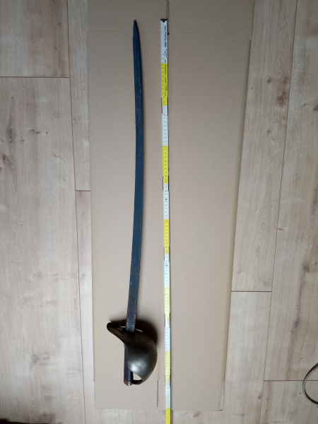 schwerer Säbel mit großen korbgefäß vermutlich Saudi-Arabien steckrückenklinge aus Solinger Fertigung alleine diese Klinge in dieser Qualität zu bekommen ist heute nicht mehr möglich.