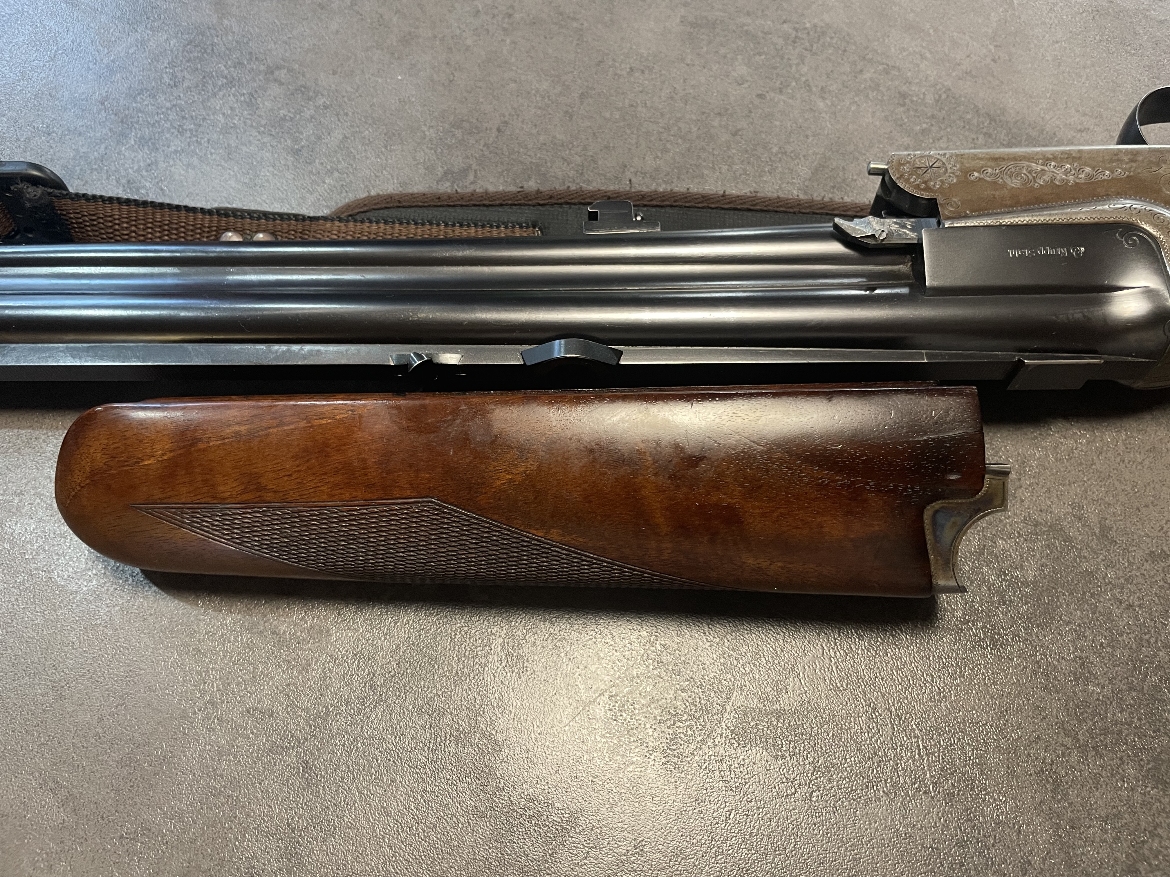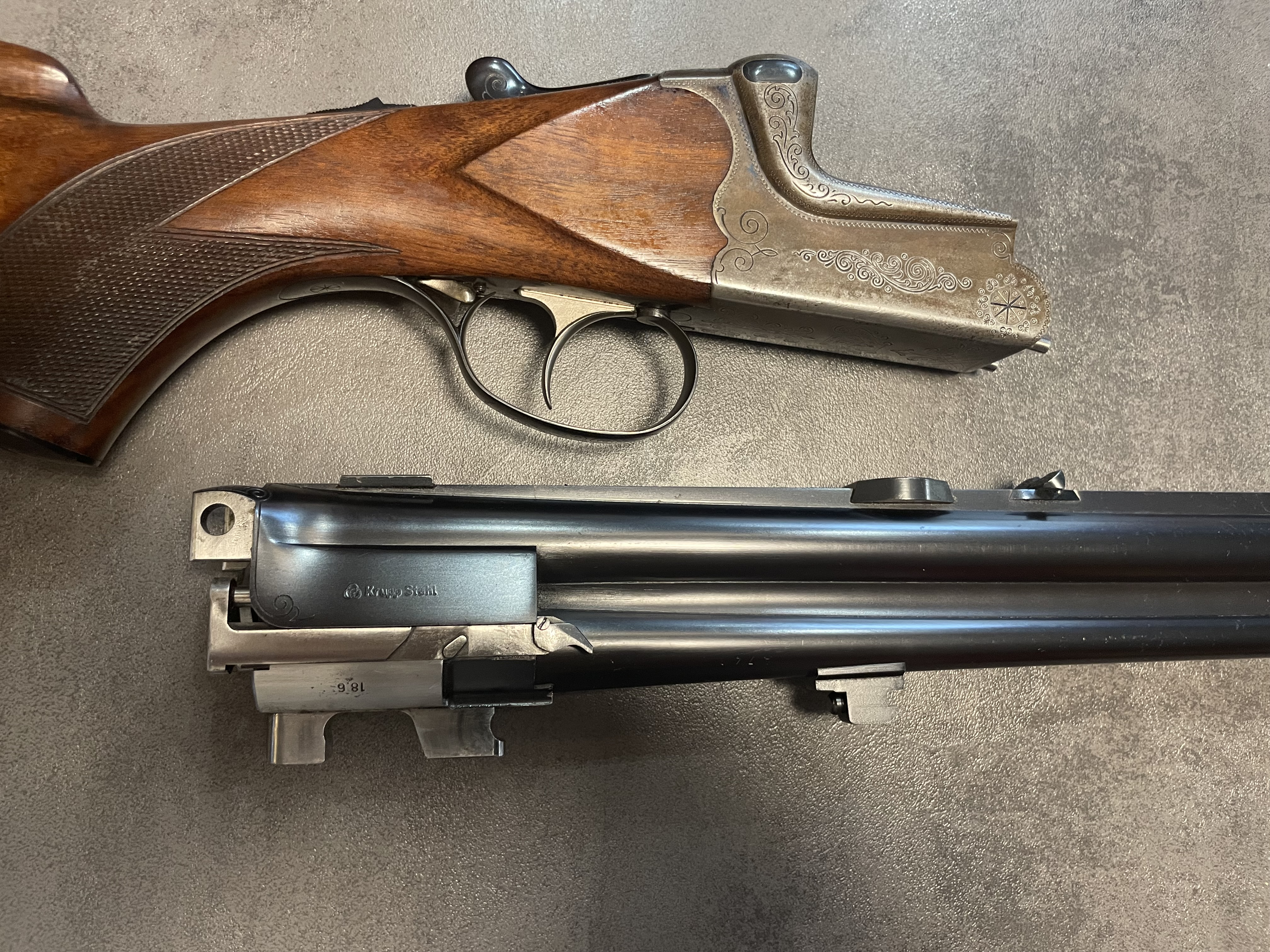 Ich verkaufe umständehalber meine Bockbüchsflinte Merkel Modell 2010 in den Kalibern 9,3x74R und 12/70. Der Schrotlauf hat Vollchoke. Die Lauflänge beträgt 60 cm und die Schaftlänge, gemessen vom Abzug bis Ende der Schaftkappe, 36,5 cm. Der Einabzug hat einen Stecher und kann im unteren Teil des Abzugbügels zur Laufwahl umgeschaltet werden. Der Schaft hat einen Pistolengriff, leichten Schweinsrücken, eine deutsche Backe und sehr schön gemasertes Nussbaumholz. Weiterhin sind Schwenkmontage-Unterteile und eine Klappvisierung auf dem Lauf vorhanden.