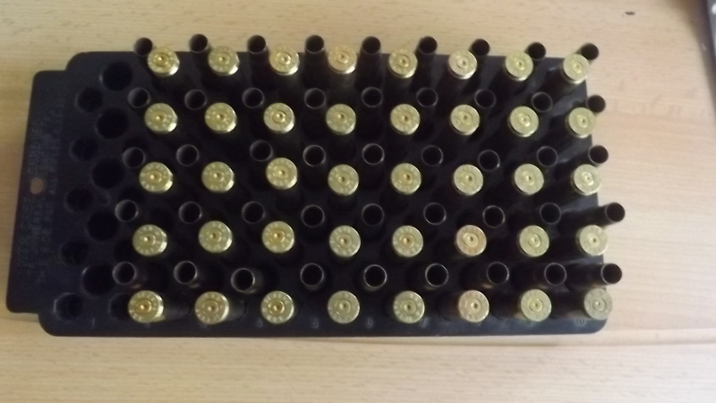 85x S&B 8x57 IS Hülsen auf MTM Universal loading Tray einmal Geschossen