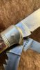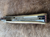 Gesamtlänge aufgeklappt 21,2 cm Klingenlänge bis zum Ricasso 8,5cm. Auf jeder Seite ein minimaler Pin Crack , die Gürteltasche ist Made in USA. Das Messer passt da hervorragend rein.---