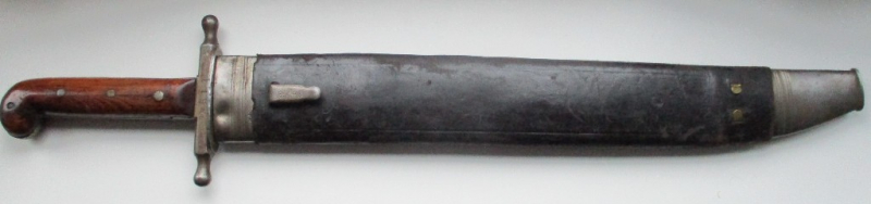 Pionier Haumesser, Faschinenmesser M 1853/89. Österreich 1.WK. Leder weich und nicht brüchig. Klinge ohne Marke, Stempel auf Mundblech und Haken. Sehr guter Zustand.