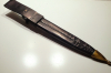 Standhauer 1850, breite Klinge, Eisenmontur mit Beimesser und Gabel. Relativ schwer. Signiert: Lundkornhill London. Die Scheide aus Leder ist neu. Gesamtlänge: 50 cm, Klingenlänge: 31 cm. Zustand siehe Fotos.