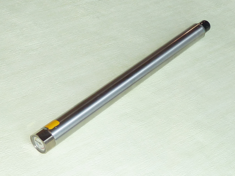 Kartusche ist aus Edelstahl mit Druckmanometer und 45 cm lang.