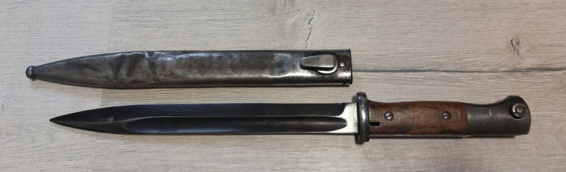 Bajonett SG 84/98 Wehrmacht K98k, K98 Original II.Weltkrieg! Schöner Zustand! Soweit erkennbar kein Rost auf dem Bajonett! Alle Stempelungen vorhanden z.B. WaA 253, Seriennummer siehe Bild, Drücker funktioniert und mit der Zahl 843 gestempelt! Abdrücke (Finger) auf Klinge sind vom Öl vom abfotografieren sonst schön blank und org. Brüniert! Klinge nicht gestempelt! Scheide WaA am Ende gestempelt sonst cof 41 und Nummer 8438! Scheide hat etliche Dellen! Weiter Foto`s auf Anfrage! Privatauktion keine Garantie und keine Rücknahme!