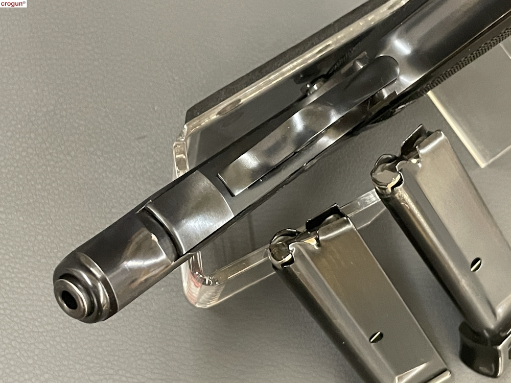 Verschluss: Stahl Hochglanz brüniert mit seitlicher Sicherung, Sicherung mit Entspannfunktion