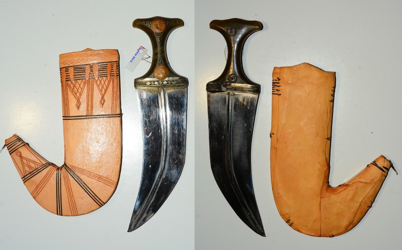 Arabischer Krummdolch, Jambia, 23cm lange und an der Wurzel 8cm breite Klinge, Ausführung wie historischer Dolch aber eine neuere Fertigung
