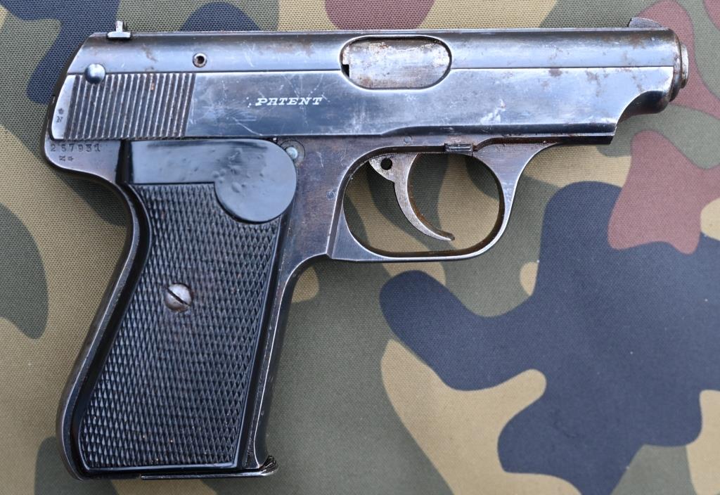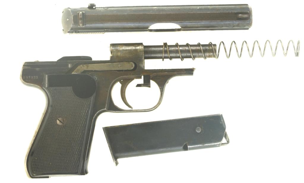 Sammlerwaffe, Pistole, halbautomatische Pistole, Selbstladepistole, Polizeipistole, Dienstwaffe, Ordonnanzpistole, Offizierspistole, Rückstoßlader mit Masseverschluss