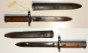 Italienisches Bajonett 1893/1938, Übergangsausführung mit Rahmen und Klinge des klappbaren Bajonetts aber mit Blockierung dieser Funktion mittels Parierstange, Scheide vorn Mitte eine Delle ansonsten guter Zustand