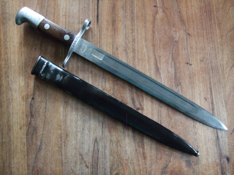Angeboten wird ein sehr schönes Bajonett M1899 Schweiz Typ C mit original dazugehöriger Scheide.