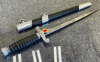 Klinge sauber, ohne tiefe Beschädigungen. Griff und Scheide original und passend.