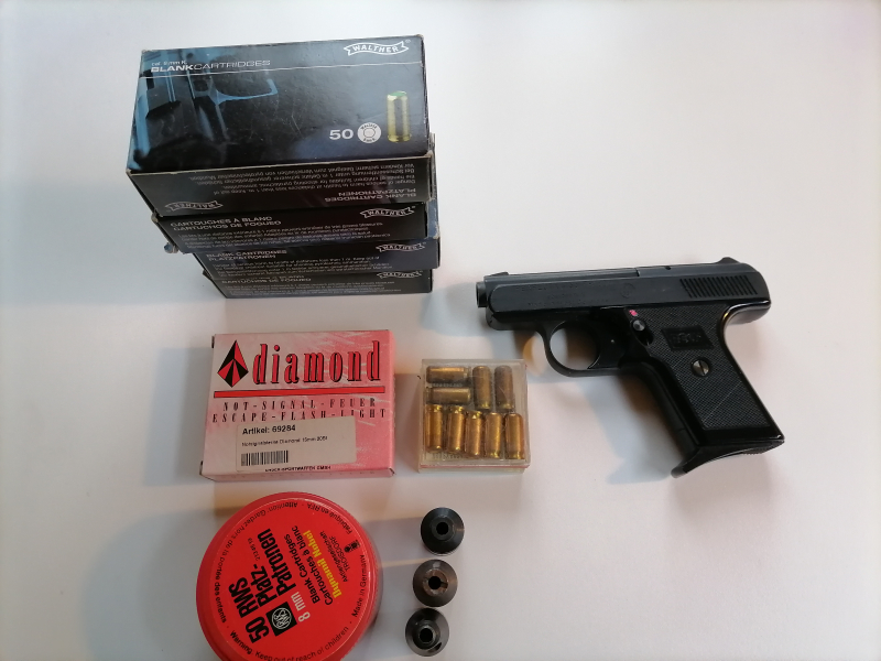 Biete eine Schreckschußpistole Reck-Perfecta ,Baujahr-1994 in Kal.8mm. Der Zustand ist Neuwertig,es wurden 3 Schuß abgegeben.Keine Schadstellen, wie neu.Dazu ein passender Abschußbecher, Platzpatronen, Gaspatronen, Notsignalpatronen und 2 Stck. Abschußbecher mit größeren Gewinde.