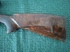 Schaft: aus 1a Nussbaum Wurzelholz mit gleichmäßiger, außergewöhnlich guter Wolkung im gesamten Hinterschaftbereich, im Pistolengriffbereich in Längsmaserung übergehend und im Schafthalsbereich sehr gesunder Faserverlauf, Kaisergriff, feine Fischhaut, Krawatte, Bayr. Backe mit 2 Falzen und leichtem Schweinsrücken, Pachmeier Kappe old. engl. Braun, Schaftlänge 37 cm.