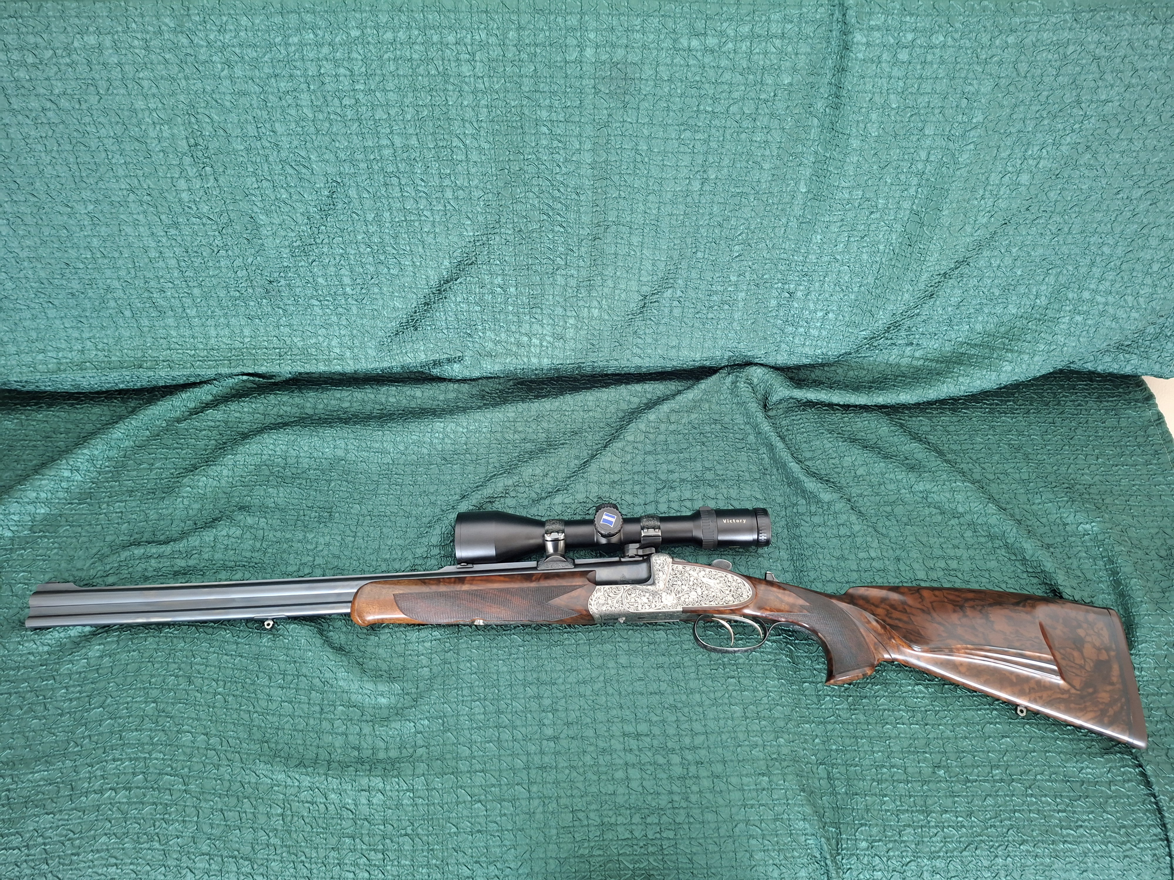 Zum Verkauf kommt ein Seitenschlossdrilling der Fa. Jakob Koschat, Ferlach Fabr.-Nr.: 26.1697, handgearbeitetes Unikat.