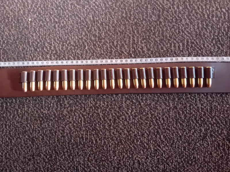 Ich verkaufe wegen Aufgeben des Schießsports einen absolut neuwertigen, nie benutzten (nur für die Fotos) Gürtel für insgesamt 24 Stück Patronen im Kaliber .357 Magnum bzw. 9 mm Luger. Er ist aus dunkelbraunem, hochwertigem Rindleder in einer Stärke von 3 - 4 mm Dicke gefertigt und insgesamt ca. 124 cm lang. Anhand des nebenliegenden Maßbandes ist die Länge und die Einstellbarkeit auf den Bauchumfang leicht nach zu vollziehen. Die Patronen sind nur für den Zweck der Fotoeinstellung als Dekoration eingesteckt worden und nicht Bestandteil des zu verkaufenden Gürtels. Ich verkaufe rein aus privater Hand ohne jegliche Gewährleistung, Garantie, Nachverhandlung, Wandelung, Minderung oder Rückgabe nur zum Festpreis gegen Vorkasse (inkl. Versandkosten) per PayPal. Kein Tausch.