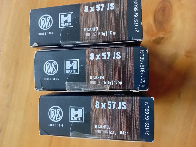60 Schuss 8x57 JS Munition, original RWS, in versiegelten Schachteln (3 Pack, s. Bilder)
