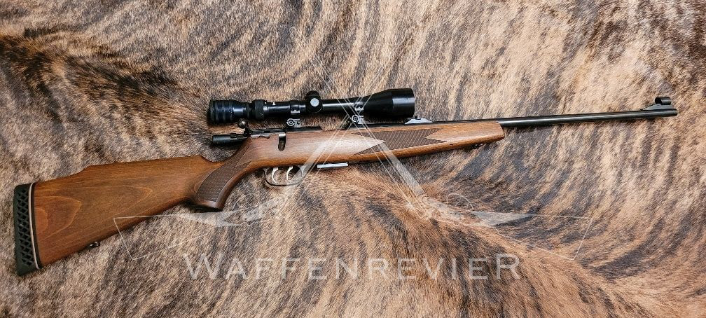Montiert ist ein Redfield 3-9x44 mit dem Absehen 1 auf einer Festmontage.