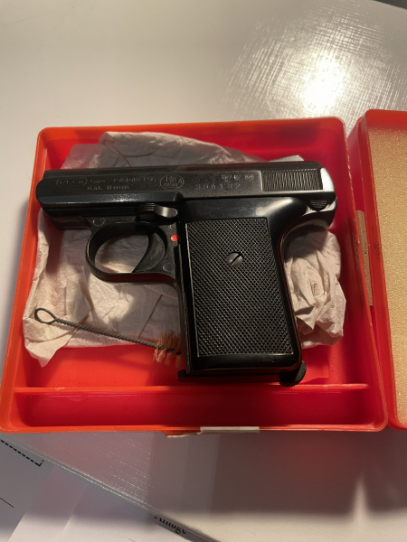 GELEGENHEIT!!! Biete hier eine Reck P6 Mit der PTB (A) 48-69an in 8mm an. Beschuss von 73. Die Waffe ist einem sehr guten Zustand. Die Brünierung ist noch top. War bei mir viele Jahre in der Vitrine und wurde von mir nie geschossen. Das ist noch das Modell mit der nur vorne eingepressten Laufsperre. Darf so nicht mehr hergestellt werden, da viele sie umgebaut hatten um so eine scharfe 6.35er zu haben, was natürlich verboten ist. Dennoch Altbestand zählt und darf somit gehandelt werden. In dem Zustand wohl nicht mehr zu bekommen.