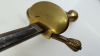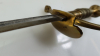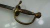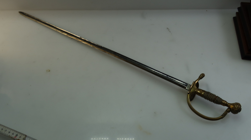 mit grossem Handschild. um den Griff gewickelter Faden / Draht , Griff vermutlich Messing - einseitig geschliffene Klinge 66 cm lan mit Ziselierungen in der Blutrinne