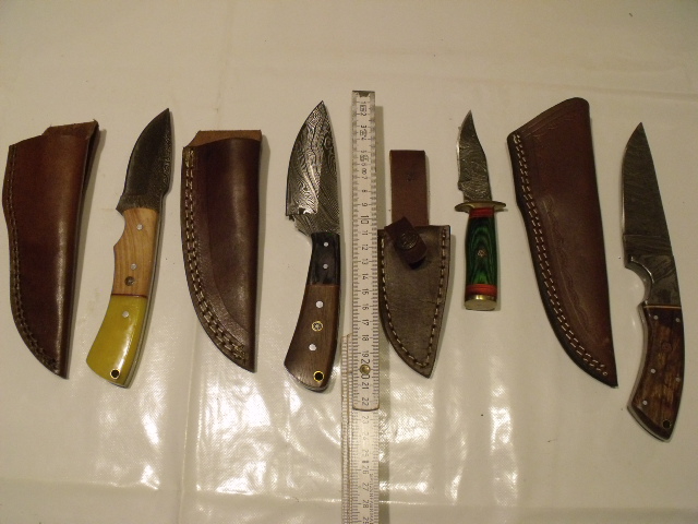 4 Messer, fand ich mal ganz hübsch. Unbenutzt, habe mal ca. 15 Euro pro Messer bezahlt. Bischen Rost ist vorhanden, was aber wohl beim schleifen, polieren wieder runter geht. Versicherter Versand mit DHL vorgesehen. Privatverkauf, ohne Gewährleistung, Garantie, Wandlung, Rücknahme, u.s.w.